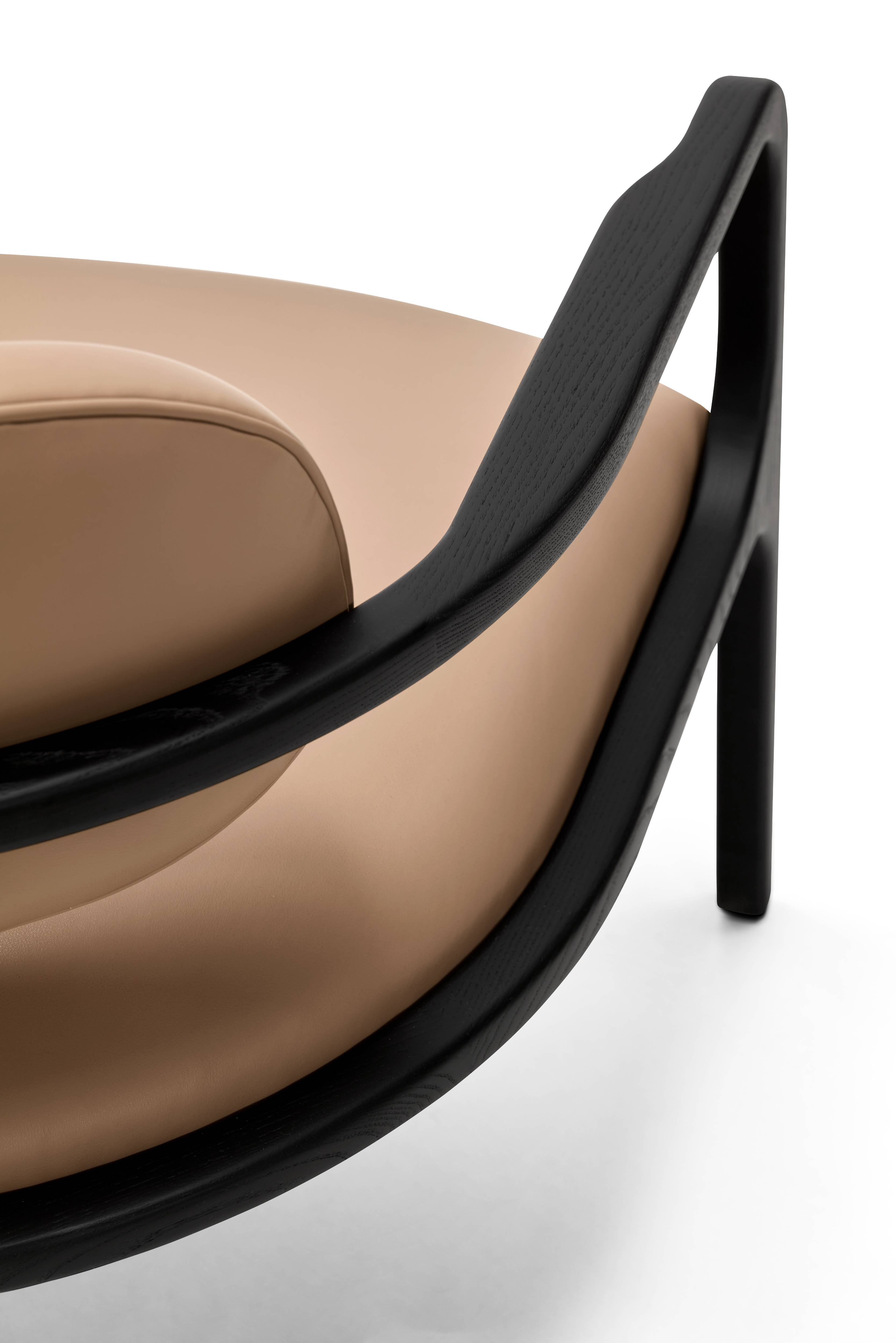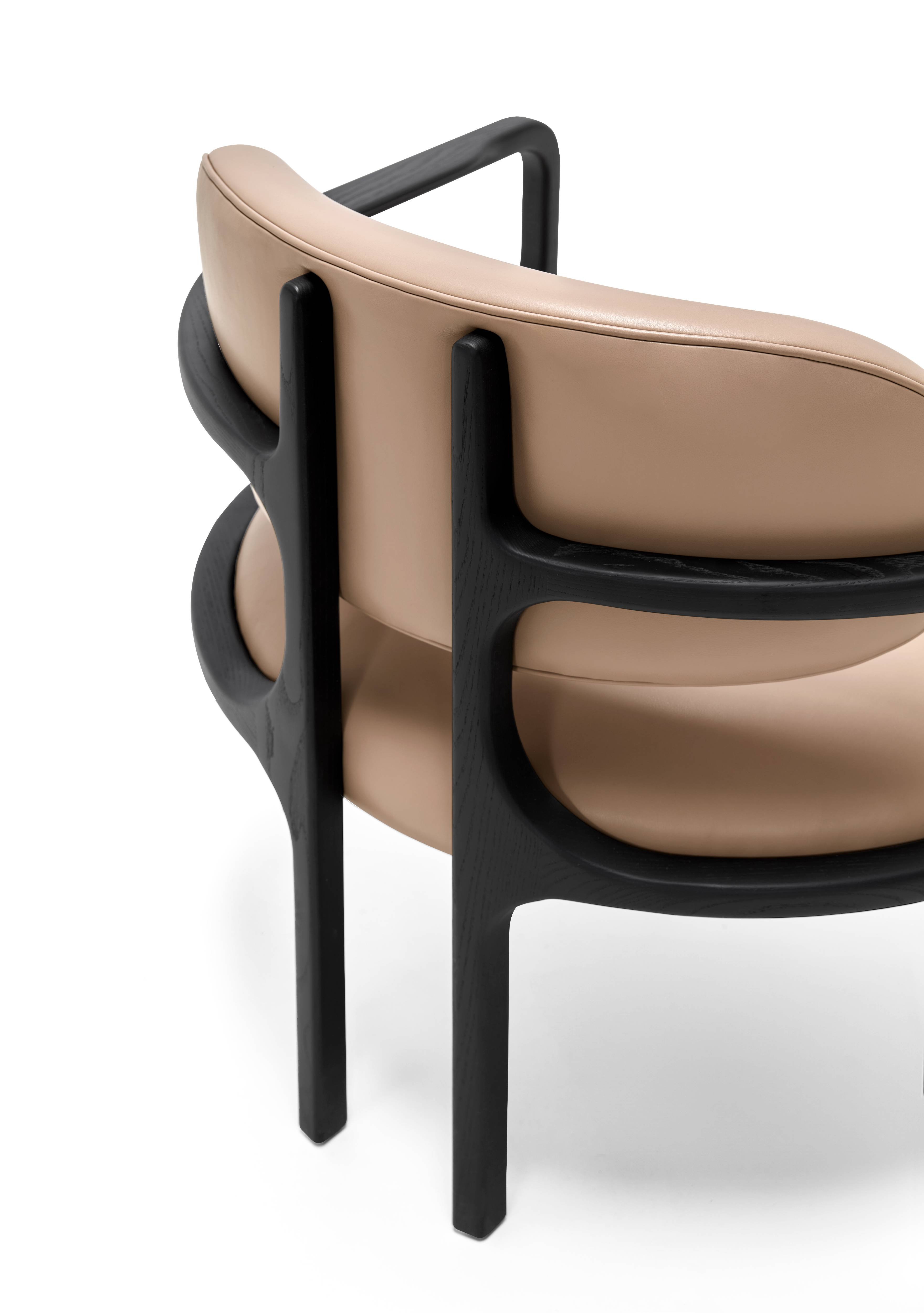 Aceasta este esența surprinsă în designul său. Structura din frasin negru urmează un ritm de linii moi, organice, asemenea dealurilor domoale și râurilor șerpuitoare care au modelat arhitectura sa. Ușor, dar rezistent; rafinat, dar puternic, fotoliul devine o odă adusă echilibrului – acolo unde eleganța întâlnește dinamismul, iar designul se transformă în poezie.
