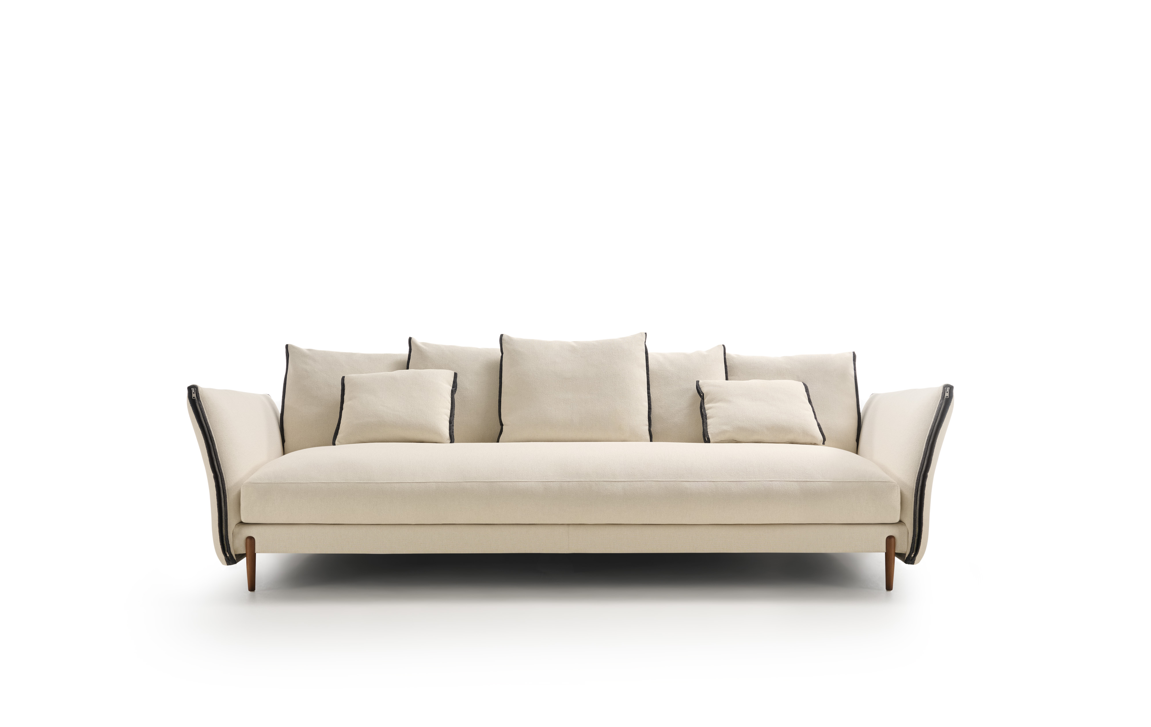 Canapeaua ERGA se remarcă prin designul său arhitectural și rafinat, care îmbină linii moderne cu detalii realizate artizanal. Laturile ușor curbate oferă o senzație primitoare, în timp ce spătarele rabatabile și pernele generoase asigură un confort adaptabil nevoilor fiecărui utilizator. Picioarele metalice minimaliste și discrete conferă un aspect aerisit, contrastând subtil cu structura sa robustă. ERGA este piesa ideală pentru cei care caută o expresie contemporană a stilului, fără a renunța la funcționalitate și confort în viața de zi cu zi.