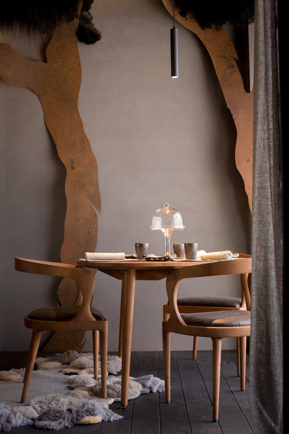 Scaunul BAZK este o piesă autentică de ebanisterie, concentrată pe menținerea contactului direct cu lemnul. Cu un design organic inspirat din natură, acesta propune o întoarcere la origini. Lemn provenit din surse gestionate responsabil.