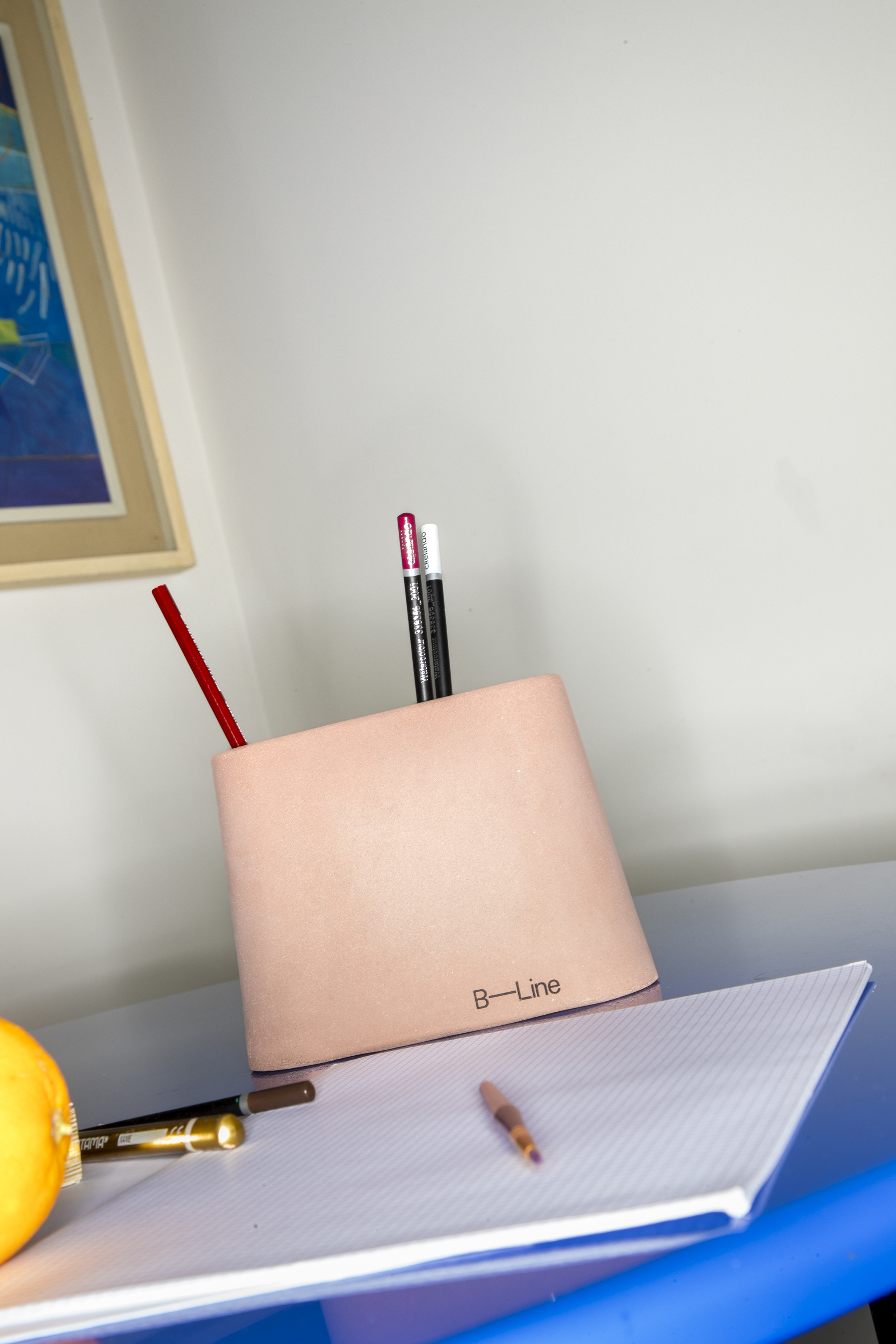 În această variantă redusă, devine un suport practic pentru pixuri sau obiecte, realizat din două materiale: beton colorat în masă și lemn masiv.
