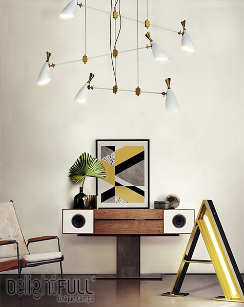 Duke are un design modern, cu o vibratie a aanilor 70. Aceasta se potriveste celor mai exiginte decoruri. Realizata manual din alama si aluminiu. Aceasta vine in doua dimensiuni, candelabru si lustra.