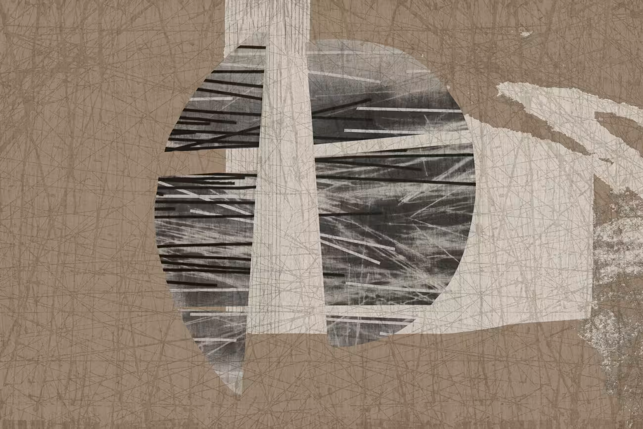 Linii subțiri străbat o suprafață încărcată de tensiune, asemenea crăpăturilor din pământ după o ploaie bruscă. Curbele apar cu forță, evocând amintirea urmelor de pași săpate în solul acum uscat, într-un dialog continuu între profunzime și suprafață.