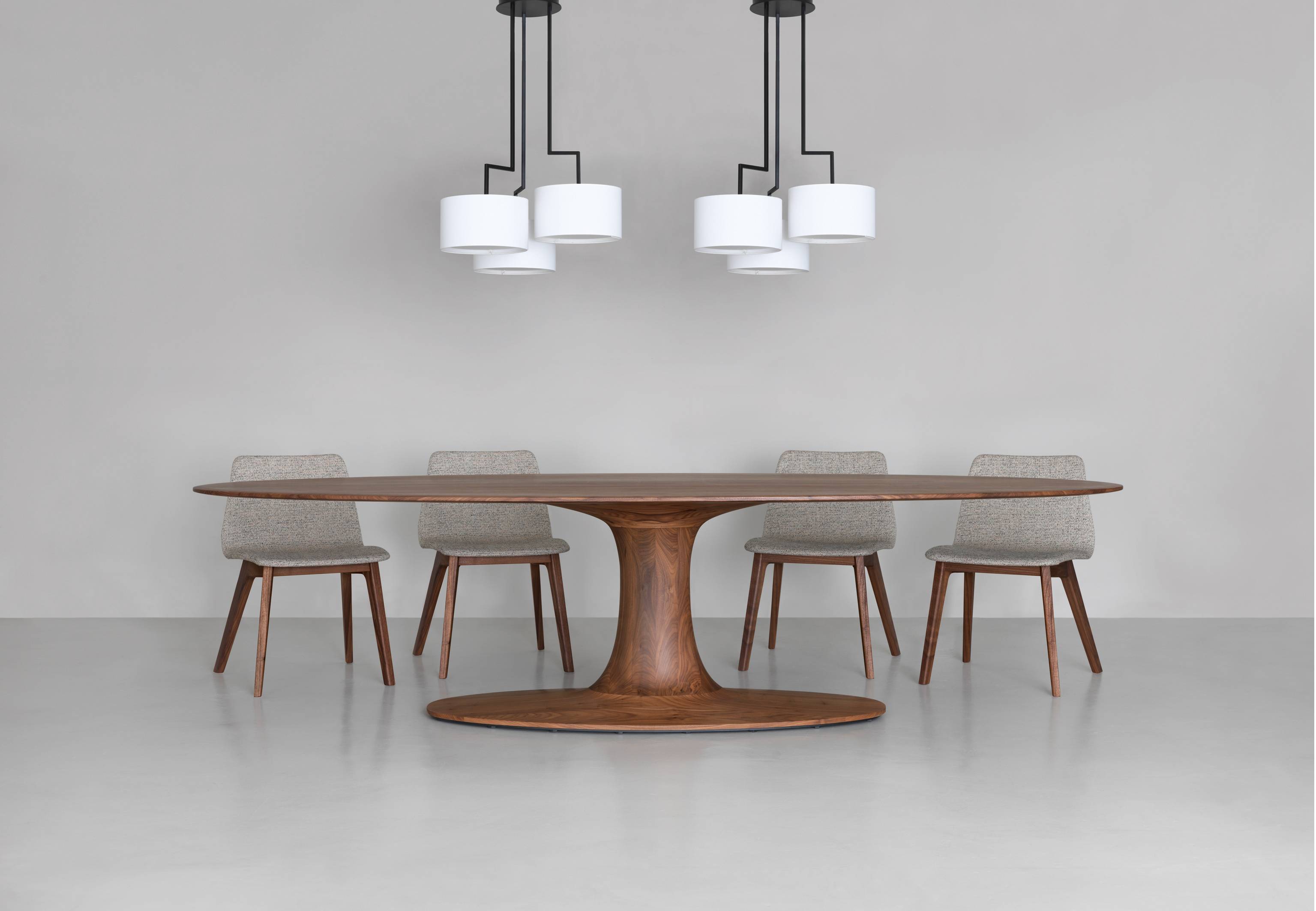 TURNTABLE OVAL este masa ovală concepută pentru grupuri mari. Acest format mai generos a fost dezvoltat pornind de la masa rotundă TURNTABLE, oferind mai multe locuri, dar economisind în același timp spațiu datorită bazei centrale.