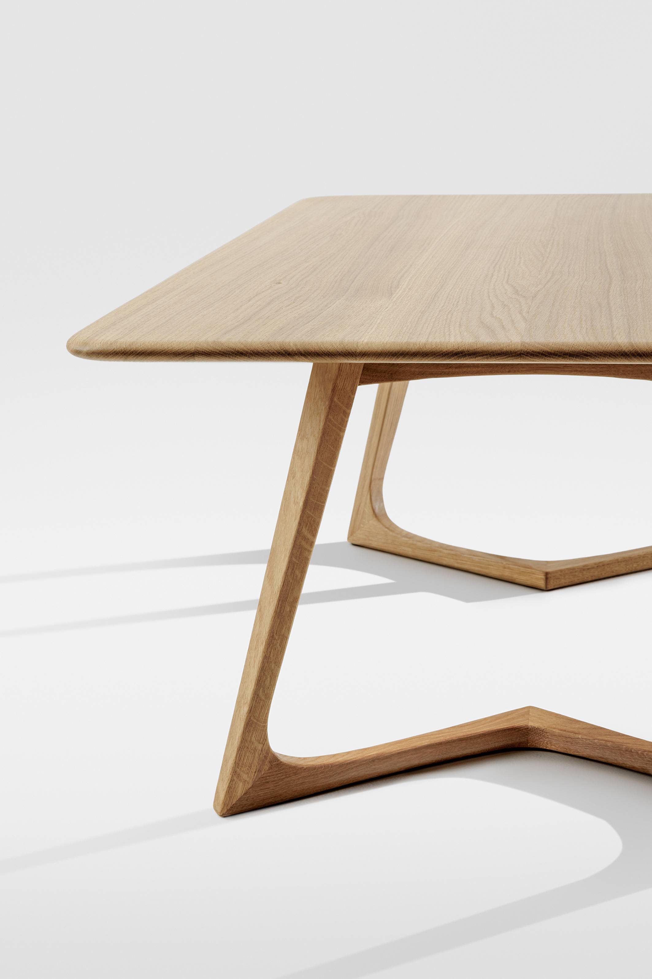 Structura biomorfă a cadrului ușor îmbină rezistența structurală cu forme fluide, evidențiind în același timp profilarea rafinată a marginilor blatului.